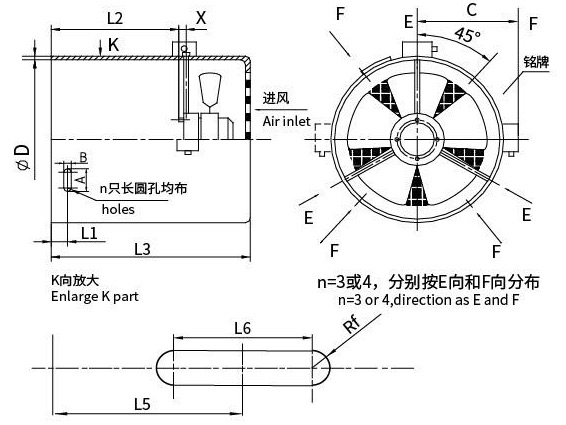 根據各客戶提供的圖紙或實樣,加工各種帶制動器手柄槽、特殊安裝孔等特配風機。