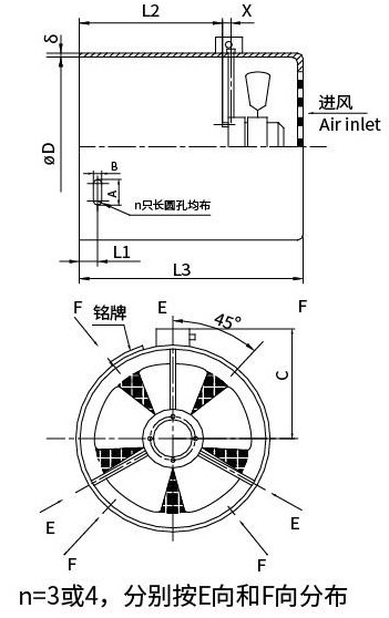 此系列風(fēng)機(jī)主要是用于Y2系列電機(jī),此電機(jī)尾部原來自帶風(fēng)葉安裝軸。為了達(dá)到更好的冷卻效果,需要加裝強(qiáng)制冷卻風(fēng)機(jī)時可采用本系列,風(fēng)機(jī)出線盒為頂出線。如客戶需要在A型基礎(chǔ)上加裝編碼器等,風(fēng)機(jī)加長時型號也定為B型,風(fēng)機(jī)加長的尺寸由客戶提供。
