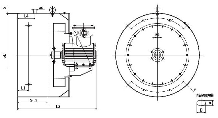 | 型號(hào) | φD | L1 | L2 | L3 | L4 | φd | δ | A | B | n |